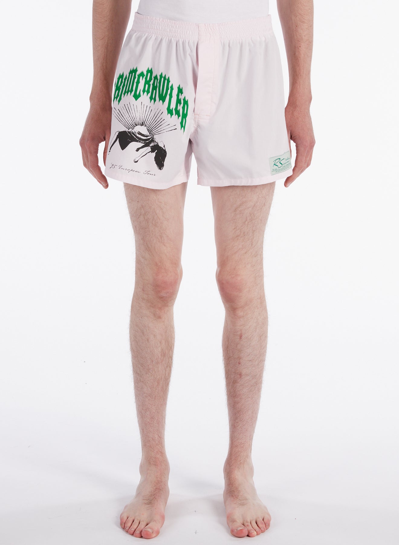 RAF SIMONS pale pink boxershorts sporting Spring/Summer 2022's iconic Grimcrawler print.